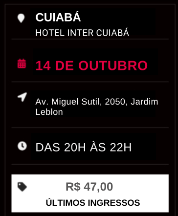 (14 de Outubro das 20h às 22h) HOTEL INTER CUIABÁ