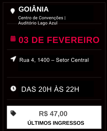 Centro de Convenções | Auditório Lago Azul, Rua 4, 1400 – Setor Central, Goiânia – GO